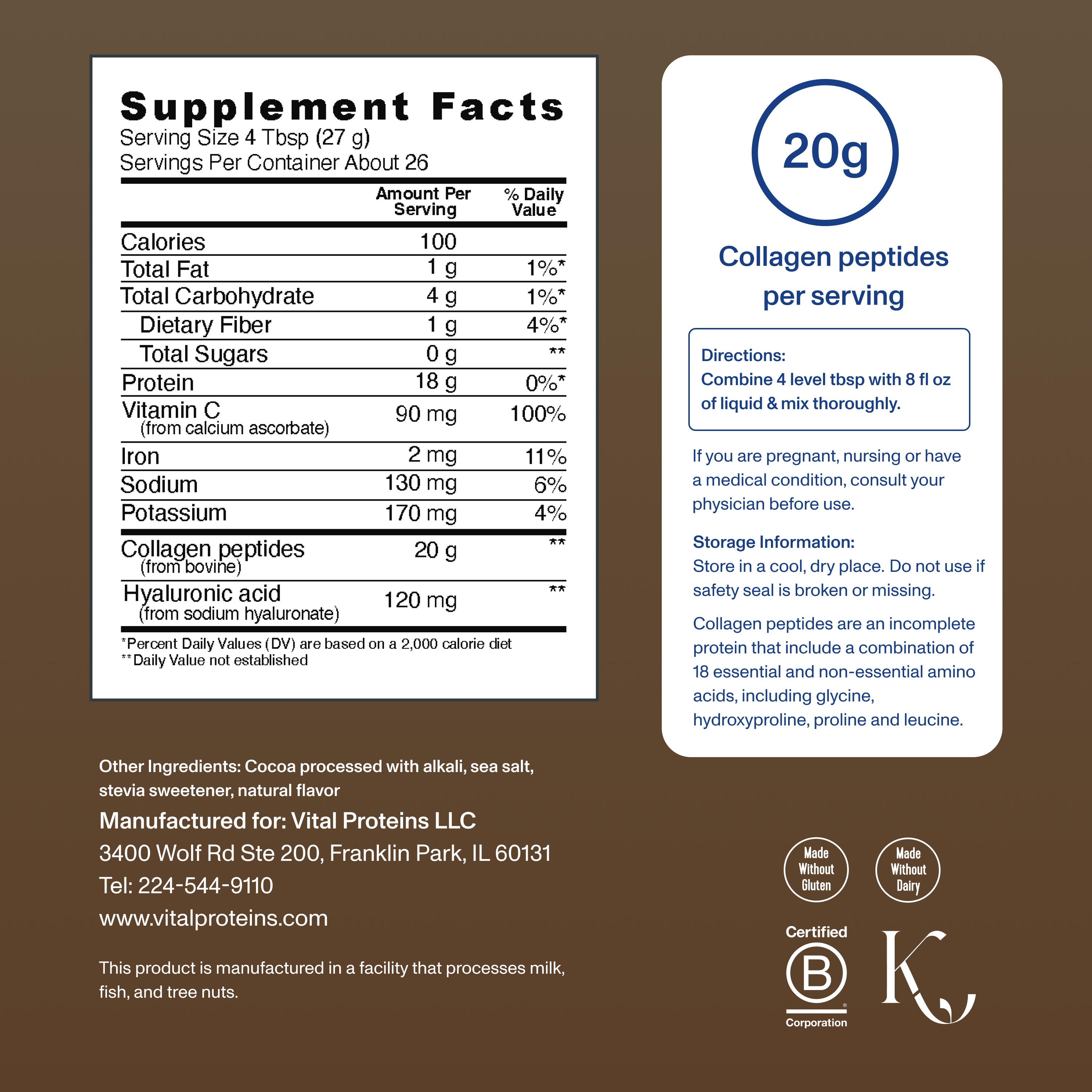 Looking to boost your scoop? Reach for this thrice-as-nice formula. In addition to collagen, which supports healthy hair, nails, skin, bones and joints, our Collagen Peptides Advanced powder boasts hyaluronic acid and vitamin C, powerhouse ingredients that provide glowing wellness benefits now in a classically decadent flavor, Chocolate.