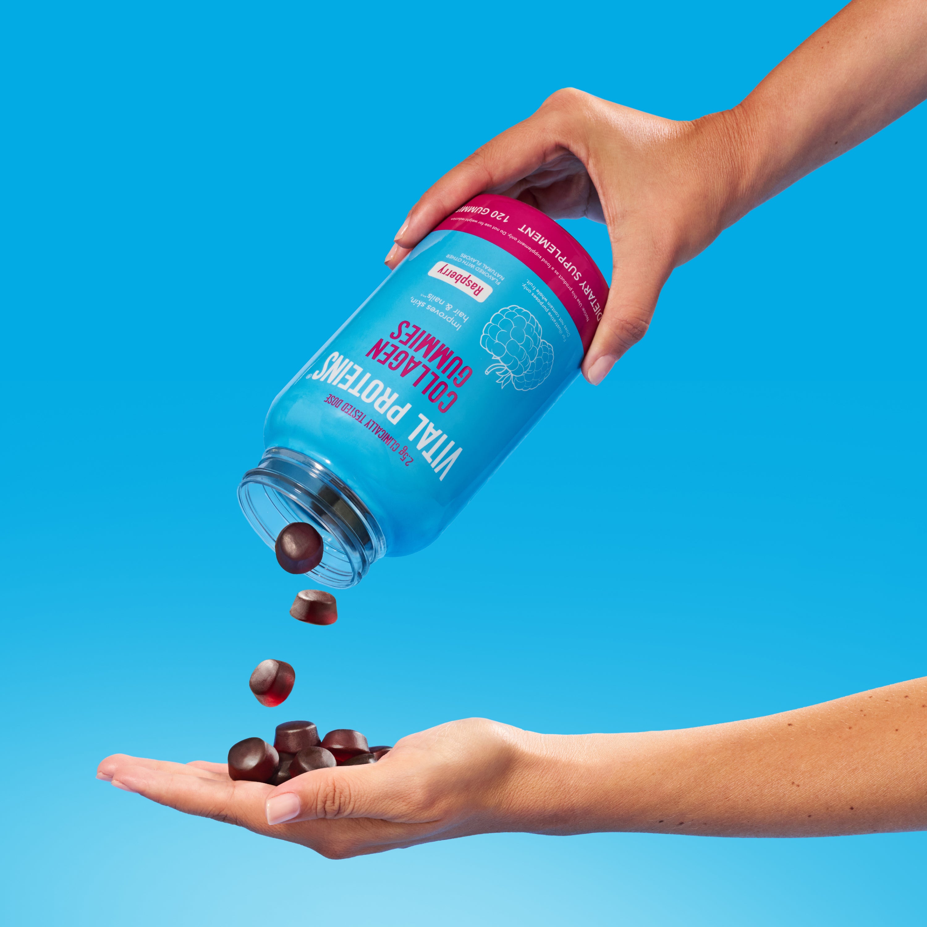 Collagen, meet gummies. We’ve put the benefits of collagen into a delicious, grape-flavored gummy that improves skin, hair & nails and reduces fine lines & wrinkles.^^After 8 weeks of supplementation with VERISOL® bioactive collagen