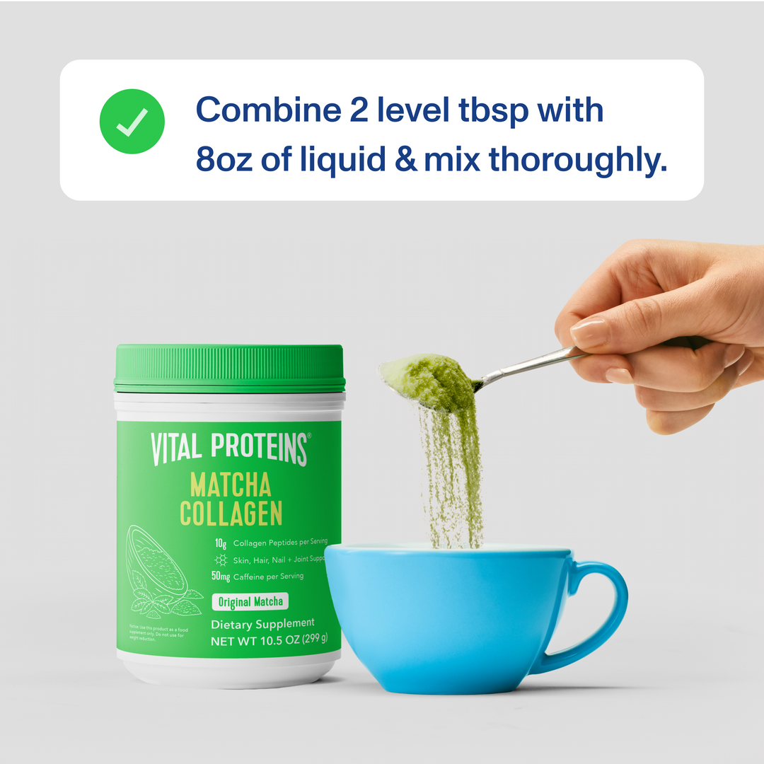 Vital Proteins Collagen Matcha Powder is sourced from high-quality Japanese matcha green tea and combined with our collagen peptides, for the best matcha collagen drink.